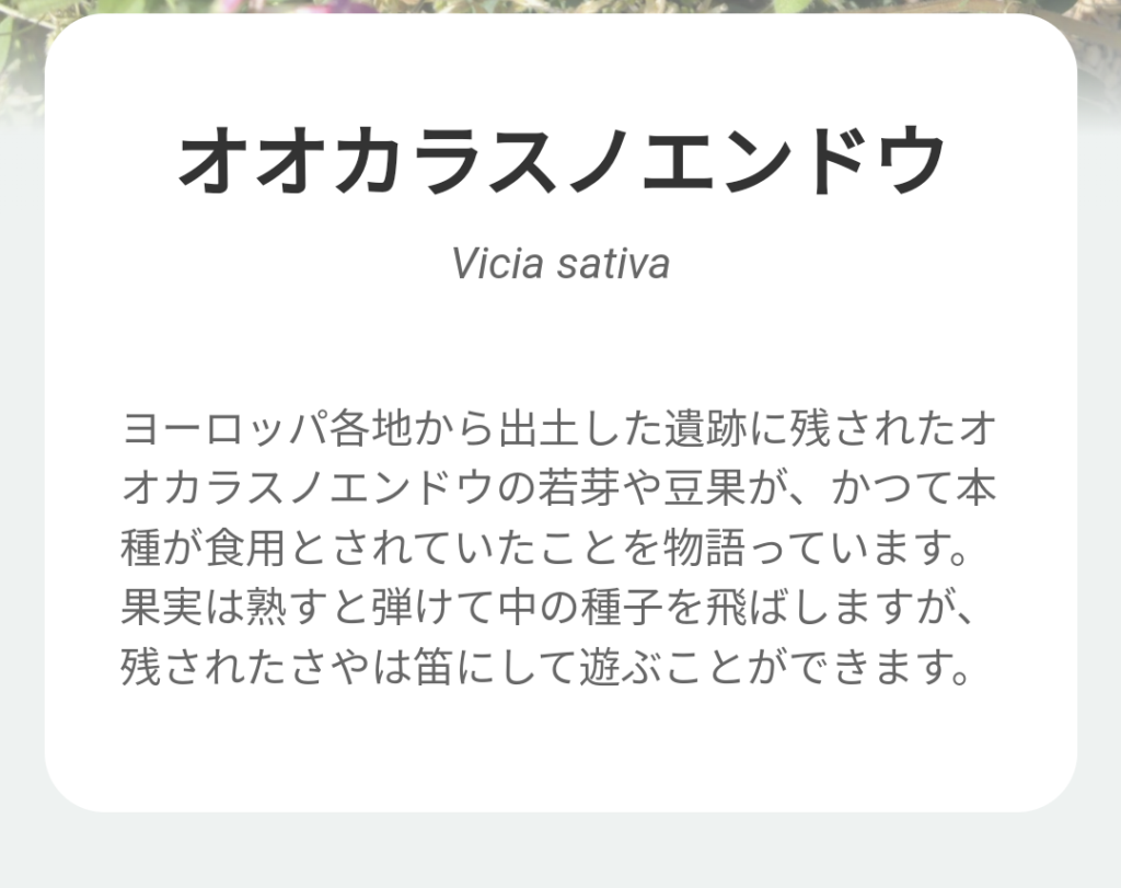 HOME > 発見 > 自然を学ぶ > 自然を学ぶ オオカラスノエンドウ 2024年4月10日 picturethisより引用 カラスノエンドウとかヤハズノエンドウとも呼ぶらしい。 春になると毎年よく見る草ですね。 会社の敷地で発見。 小学校のころにピーピー豆と読んで豆の部分から種を取り出した状態で口に当てて息を吹くと確か音が鳴った覚えがあります。 今度やってみようかな。スポンサーリンク picturethisより引用 共有: クリックして X で共有 (新しいウィンドウで開きます) X Facebook で共有するにはクリックしてください (新しいウィンドウで開きます) Facebook クリックして Pocket でシェア (新しいウィンドウで開きます) Pocket 関連 Twitter Share Pocket LINE -自然を学ぶ -植物