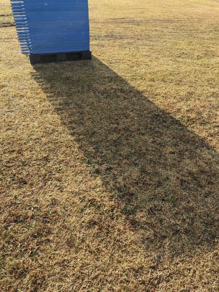 ここのレンタル屋はフェンス持ってくる時に敷地内の芝生の上を適当にタイヤ切り返しして汚したタイヤで歩道をごっつり汚して帰ったので今回の回収のときは要注意ということで初めからきちっと誘導した。