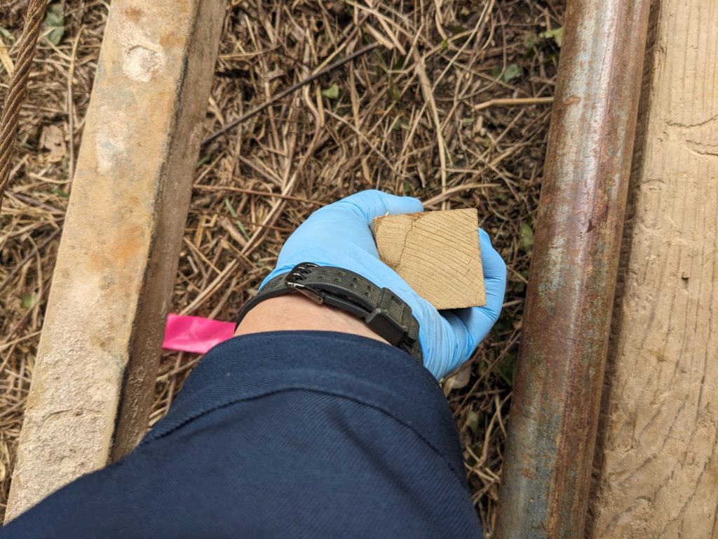 そんな、良いお天気の中で掘削の方はというと、この現場は水位の確認が優先。ということでΦ66L=10cm程度の玉石が所々出てくる中をダイヤではなく無水メタルでほじってほじって採取しました。