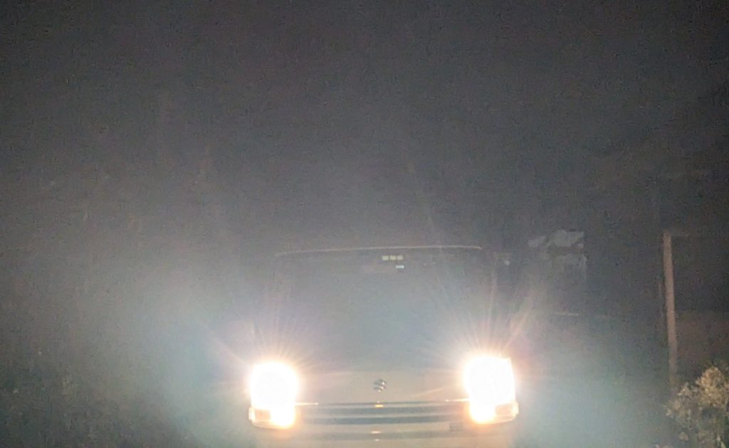 暗すぎだったので車のライトを灯して荷降ろししました。なんか駆け出しの頃を思い出すくらい久しぶりにこんなことしました。