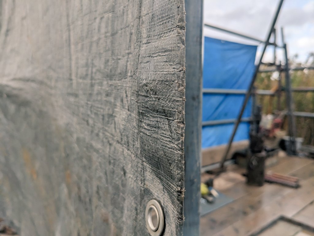 今日はいつもと違う方向からも強風が吹いてきたので対策として違う方向側にも防風用のシート設置しました。