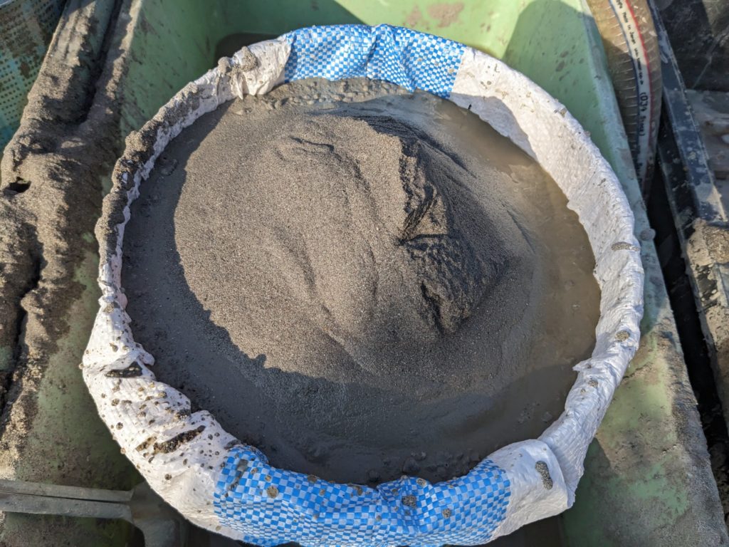 ケーシングはサンプリングのために4インチを挿入してるので出てくるスライムが多い多い。作る泥水の量も多い。