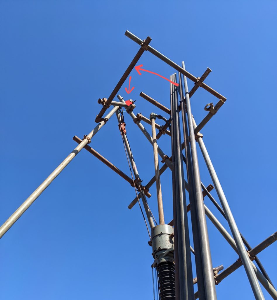 なので初日の仮設のときから三脚櫓を6mのロッドが立てかけられるようにしておきました。