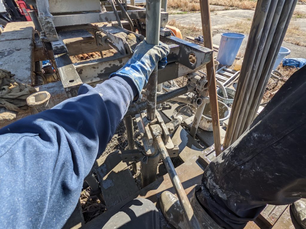 早く試してみたかったので掘削深度が10mくらいのわりと早い段階で3mのロッドを2本繋いでロッドを6mにして使ってみました。