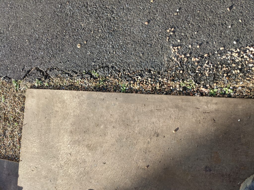 この場所は敷地の境界で敷地外はアスファルトになっていました。ここで②パターンのように設置すると見た目はスッキリしますが泥水など作業用水が流れて敷地外を汚してしまいます。なので①パターンでコンパネを設置しました。
