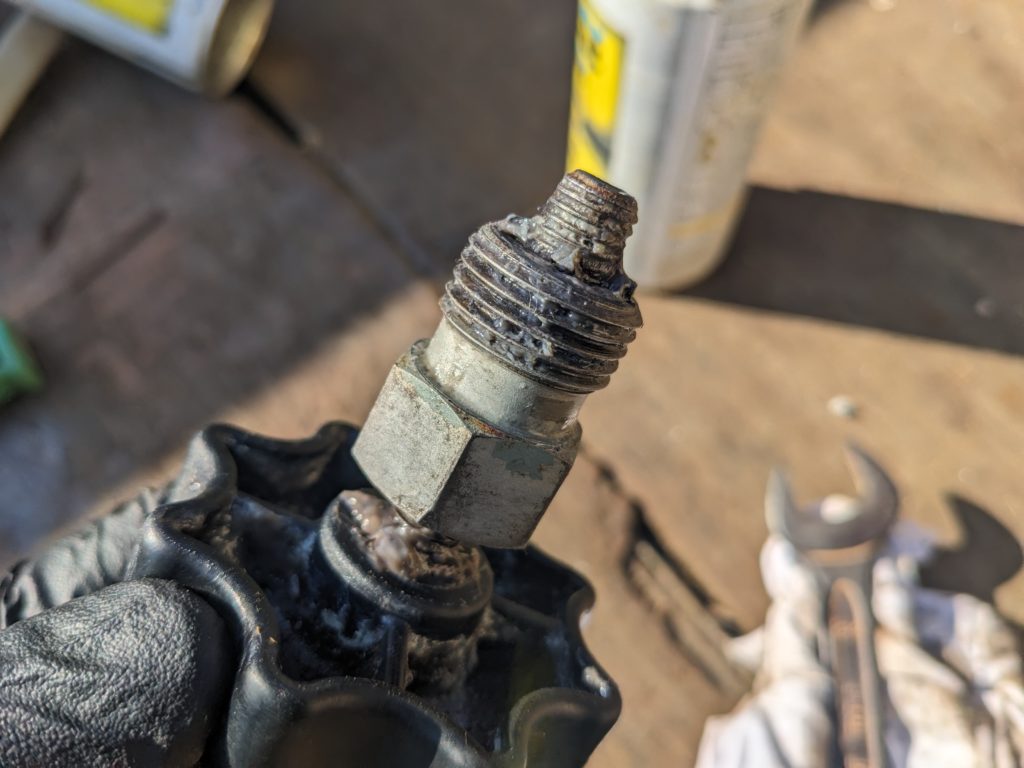 思い返すと少し前から少しバルブの回りが重たかったかな?と感じていたように思いますが、今回は作業に支障が出るレベルで回りが重たくなったのでこりゃいかんということで、バルブを取り外して見てみました。