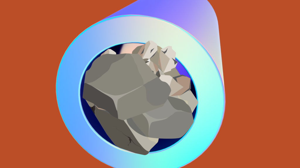 コア取りでダブルコアチューブで掘っているときに礫や玉石が先端に詰まってしまうことがあります。