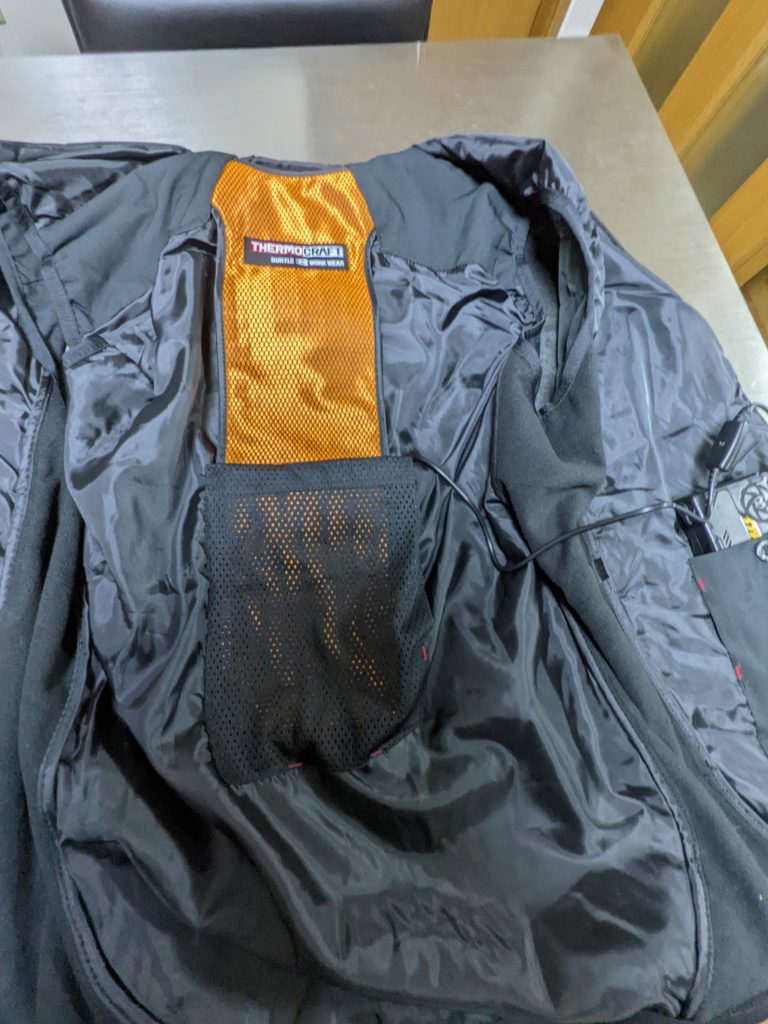 ベストは内側に電熱パッド取り付けられる専用の作りがしてある。