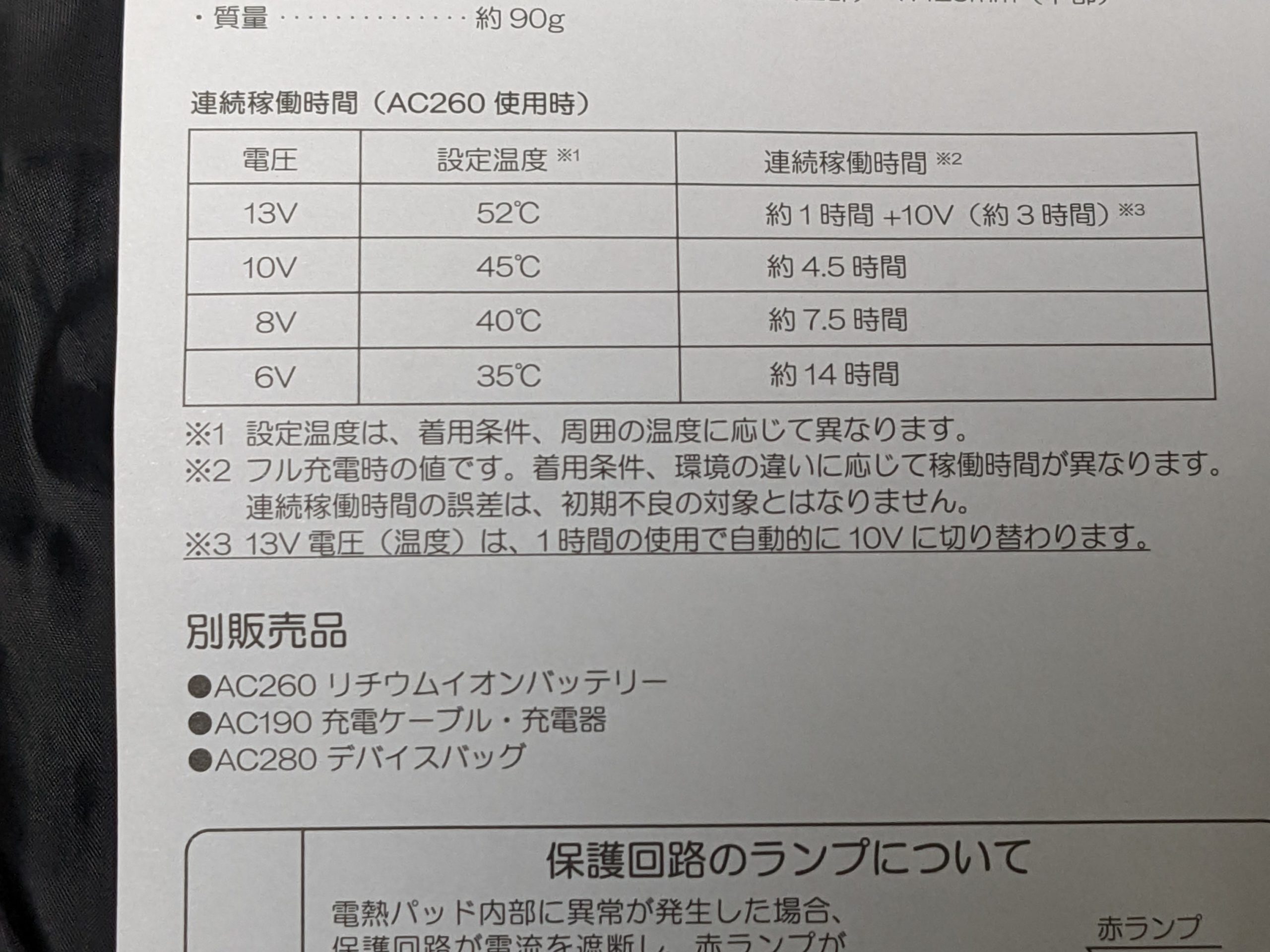 空調服で使っているバッテリー