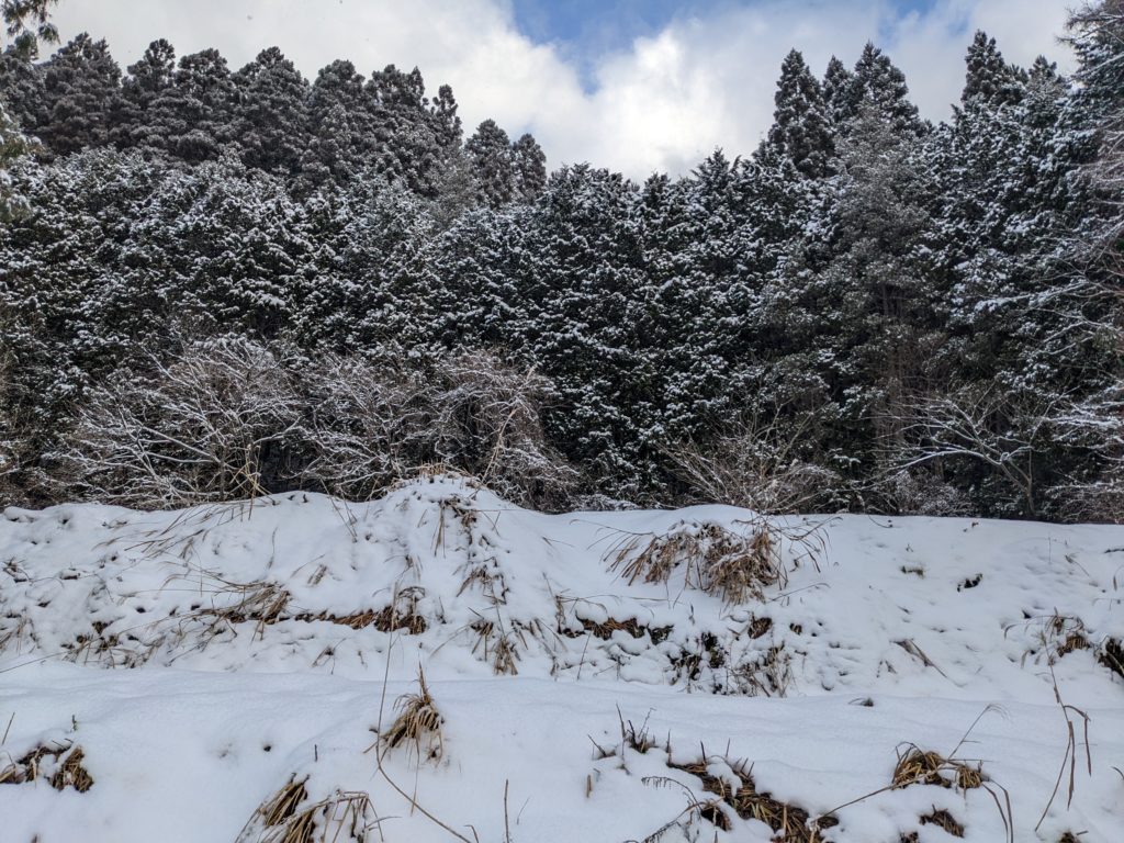 豪雪地域の現場なのでほぼ毎朝雪が積もっているので雪かきしてからの掘削が大変です。