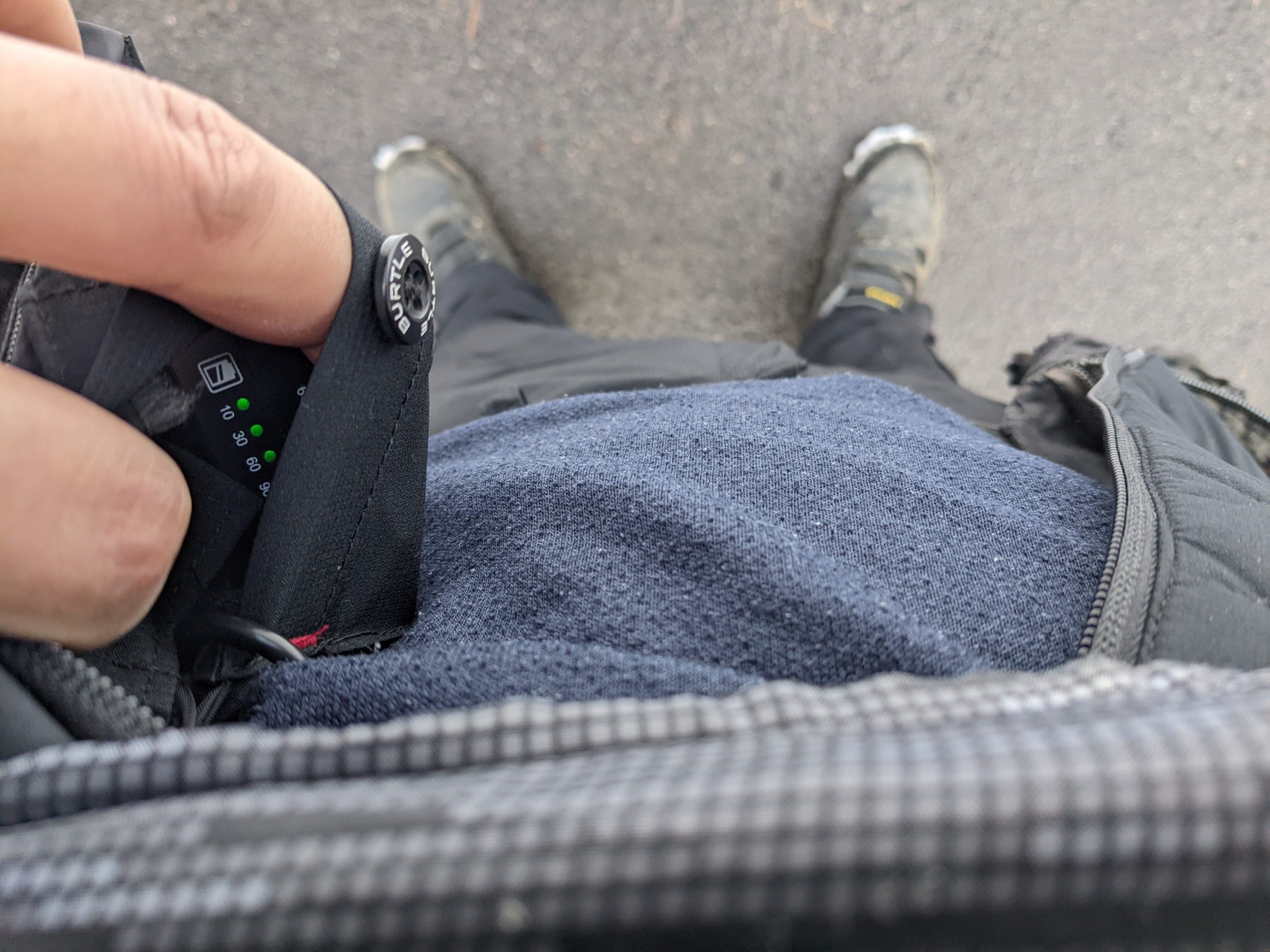 下ジップ開けてバッテリー確認