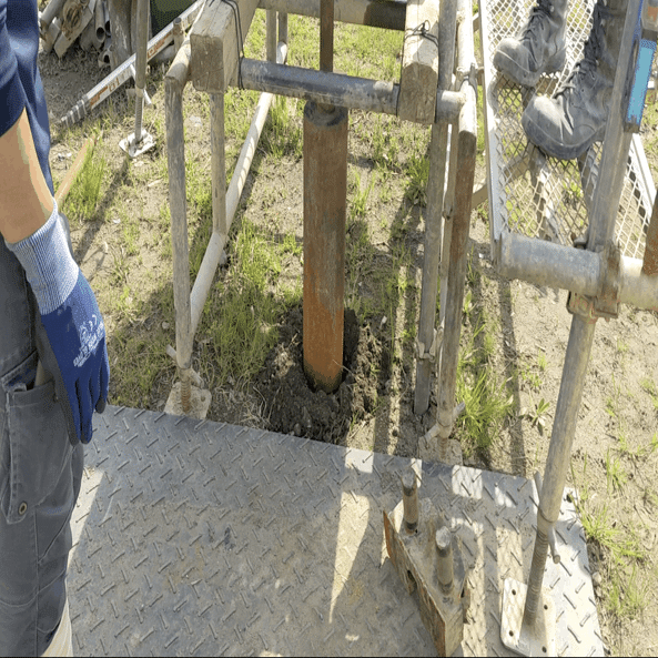 観察されてる中で若干緊張もあった中、礫混じり砂質土を1m掘って1mバチッーと採取!!さすがでした。