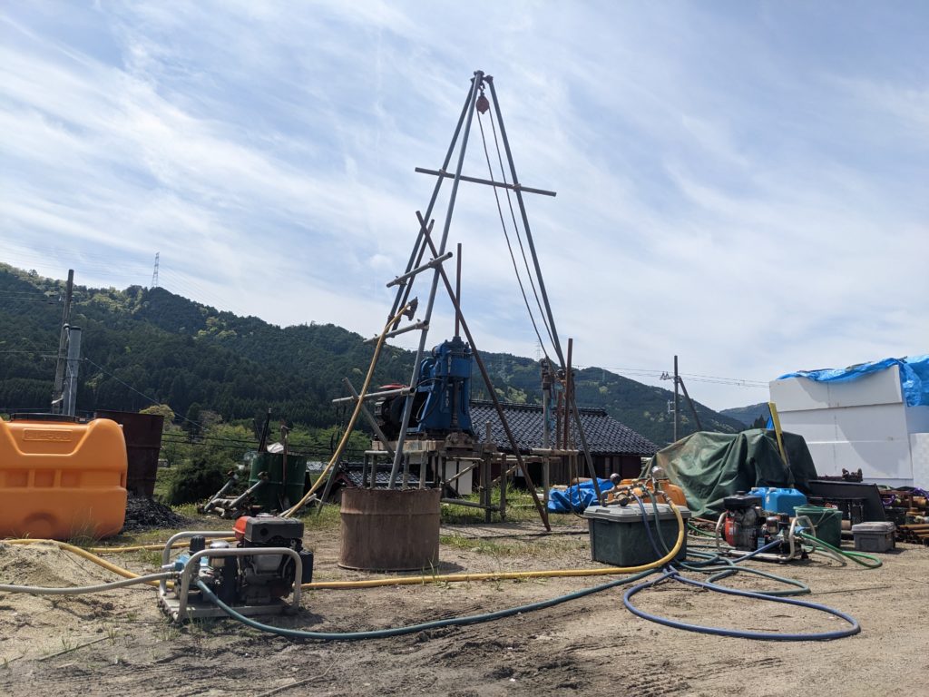 今回の交流会は午前の部と午後の部があって、午前の部では京都で地質調査オペとして独立してされている方に敷地と道具一式を貸してもらって、実際にボトムを使ってコア取りを一緒にやってみるという勉強会を行いました。