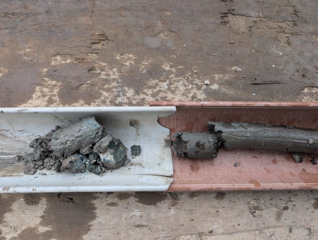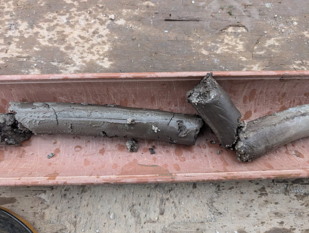 この粘土、実は標準貫入試験の際に上手く採取出来なかったものを再度貫入サンプラーで採取したものなんです。