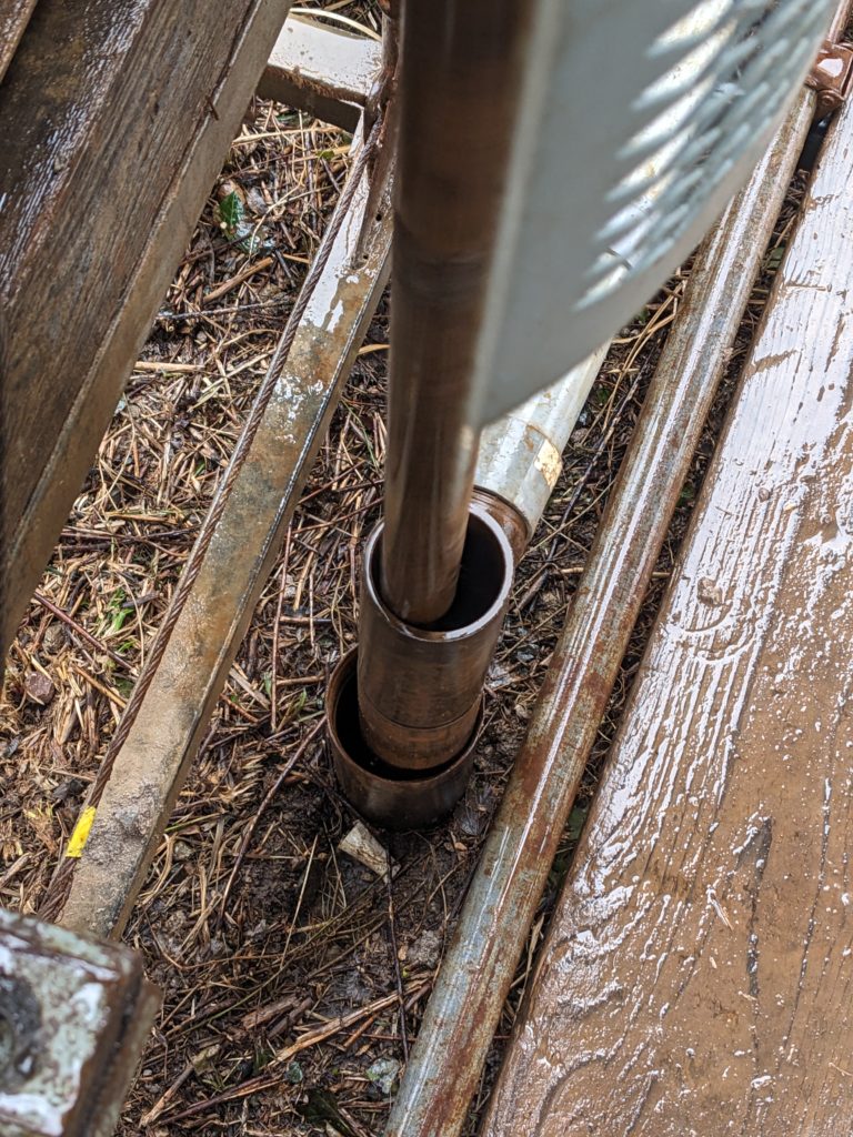 コア取り中、水圧計に振る雨粒がくっついてくるので雨粒を拭ってやりながら、見えた数字について考えながらどんどん掘りました。