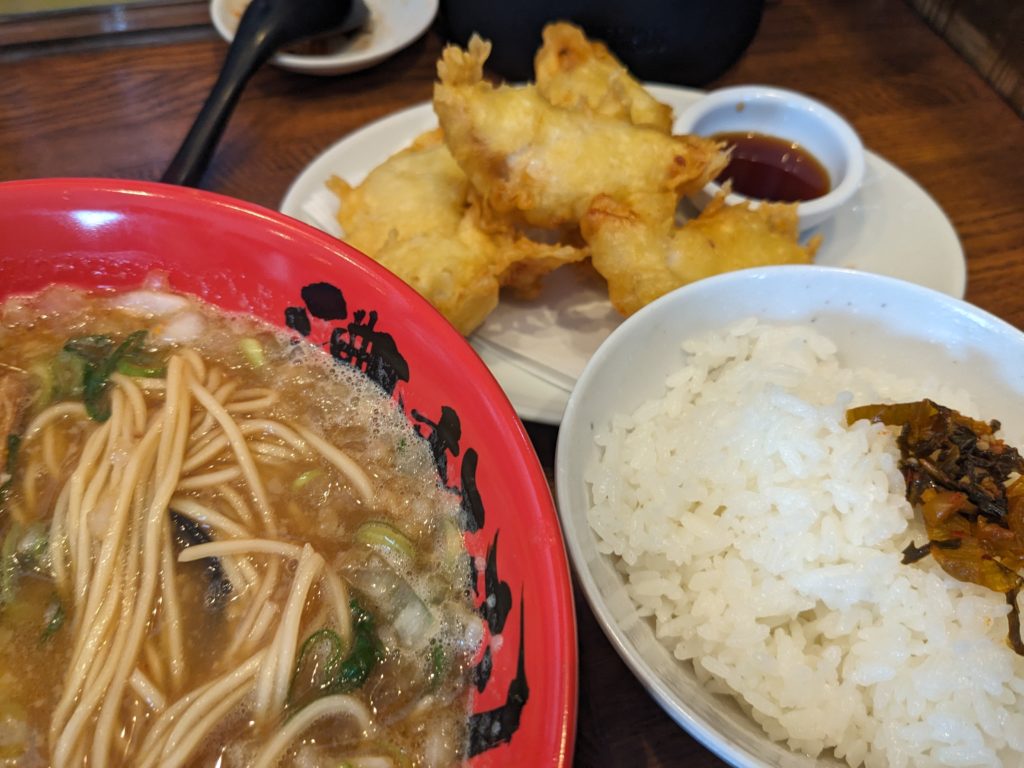 いつものラーメンに未知のランチセットを付けて食しました。うまかった。現場完了終わりだから格別です。