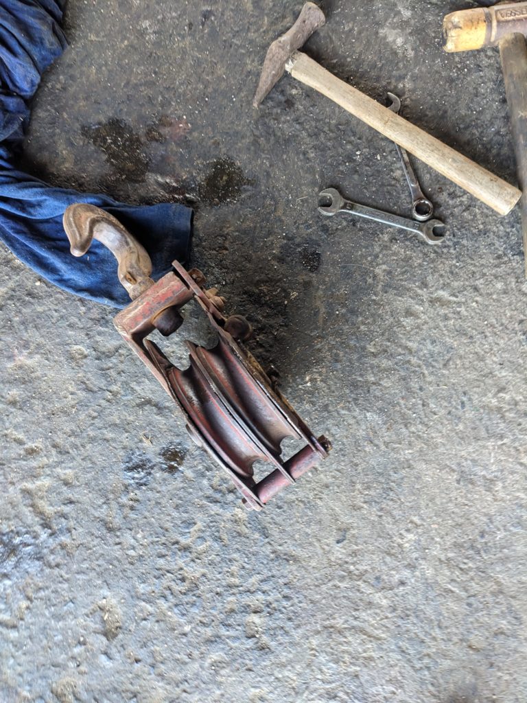 作業は、、この前使ったモノレール資材の片付け、マシンの整備、新装備の準備や実験、会社周りの除草、片付け。