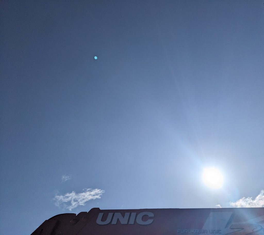 空の色は一面スカイブルーで気温は10~13度くらい。服装は上半身は冬用のコンプレッションウェアにブルゾンを羽織っているだけで、下はズボンの下に暖かい股引を履いていました。