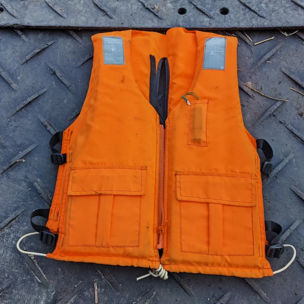 今回は水深はそこまでないんだけど水上足場ということで、ライフジャケットを着用して作業してます。寒いときはまだいいけどかさ張るから作業しにくくてあんまり着たくないんですよね。。