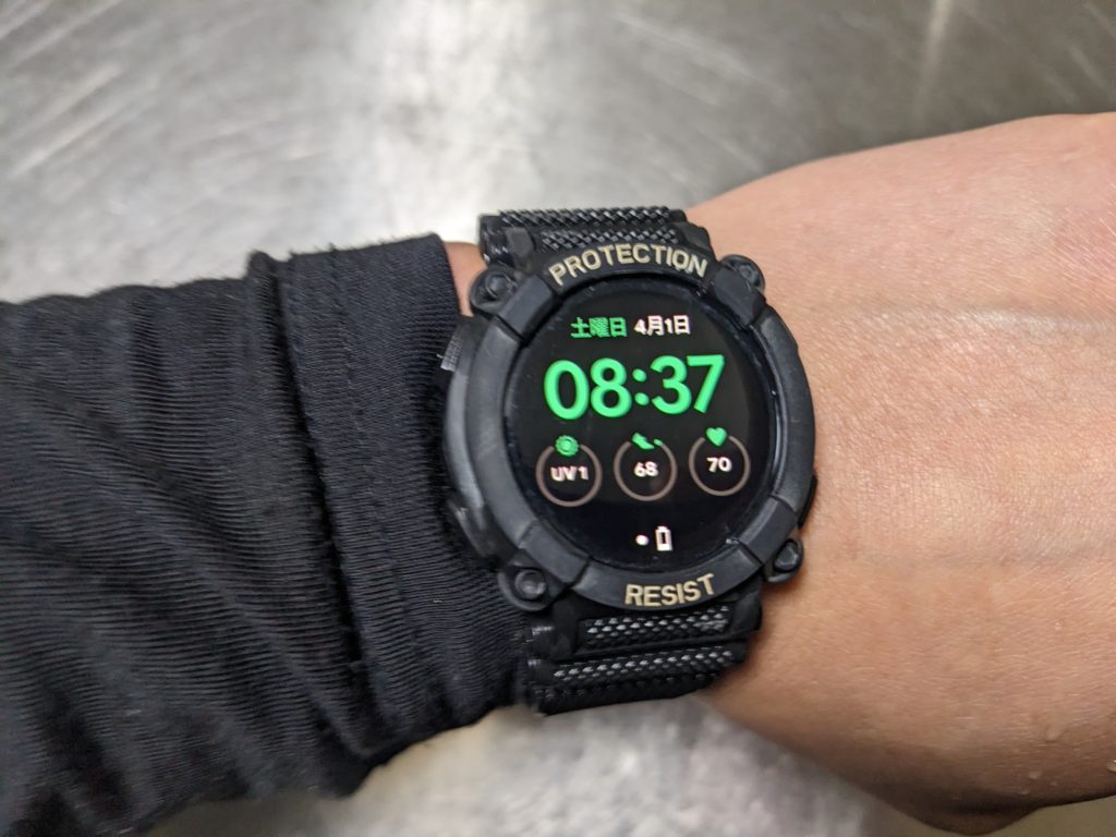 スマートウォッチで活動量計機能を使わないで、アプリも必要なくて最低限通知機能があればよいということになると、現場で使うならそれ以外に簡易防水機能とそこそこの耐久性があれば充分使えます。