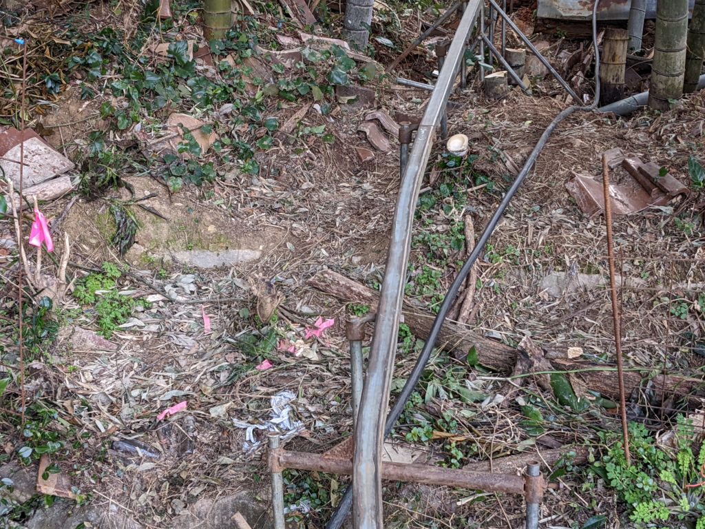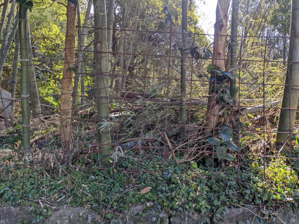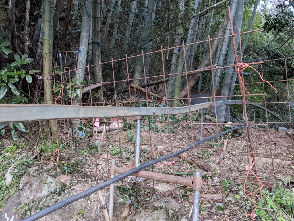 レールを設置するルートに獣害対策の柵が設置してありました。