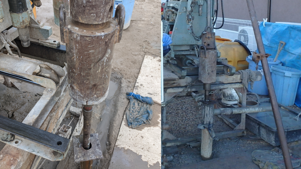 上打ちは孔内から立ち上がるロッドをスピンドルを通してスピンドル上部で試験を行います。