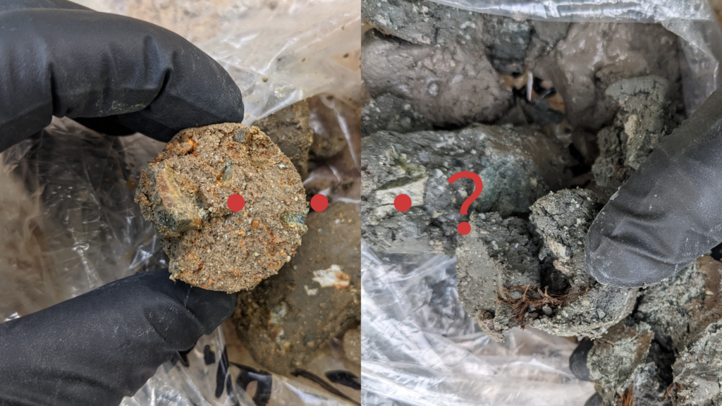 サンプラーに入った試料は風化岩っぽいが少し粘土化し過ぎているような感じで