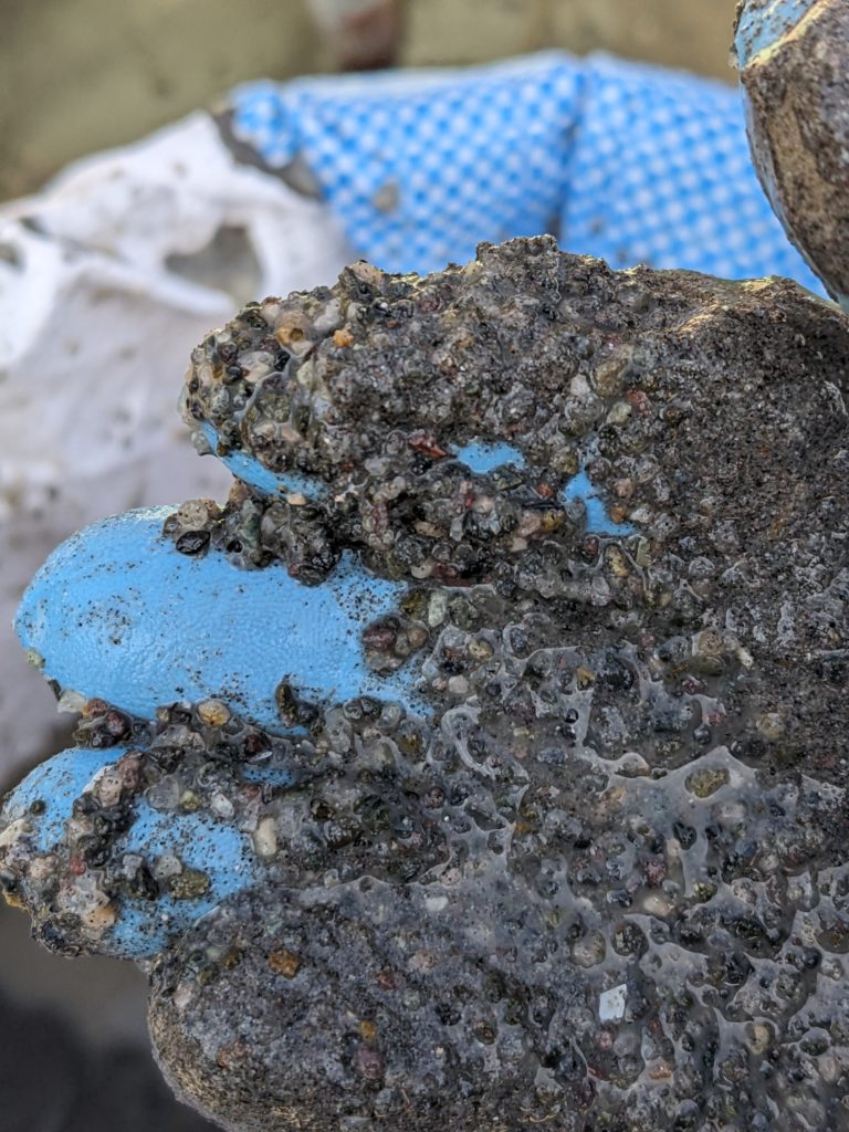 送った泥水と一緒に2mm程度の細礫や粗砂が排出されてたくさん上がってきた。