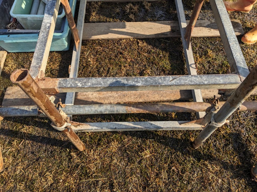 平地足場仮設のときはなるべく機械を早く設置するために機械を設置するための足場を1から組まずに専用の機械台を使って機械設置をすることがよくあります。