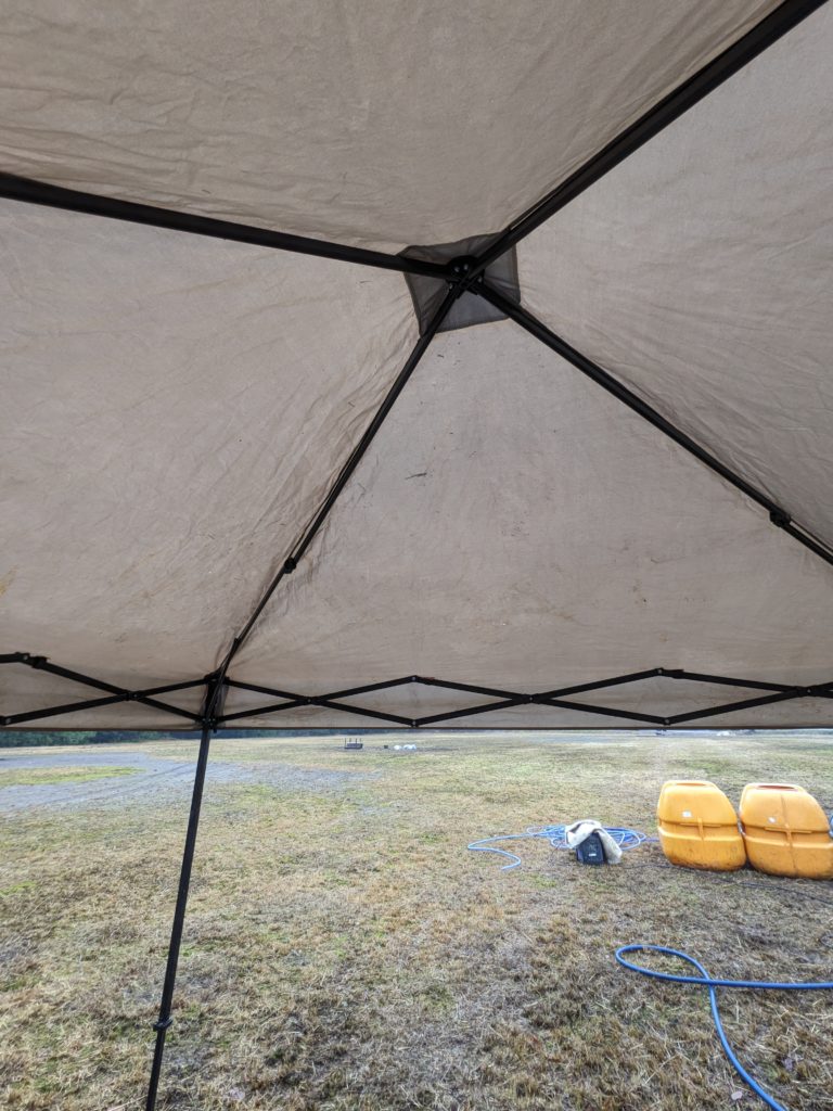 天気が穏やかなときなら、テントを立てれば屋根が完成するのでとても設置が楽な方法でしょう。