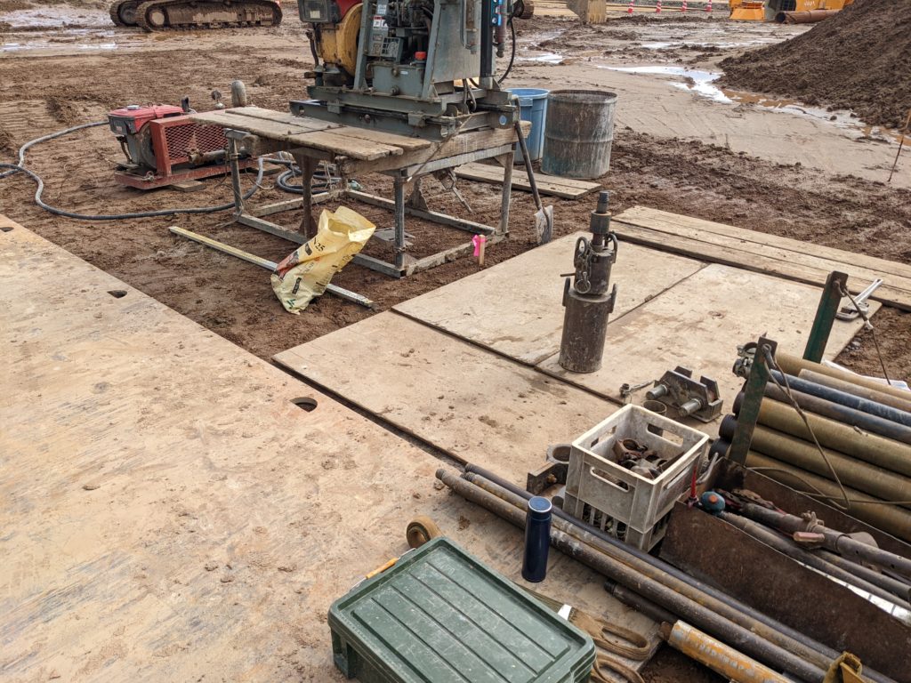 機材を設置後、掘削して1mの貫入試験の後
