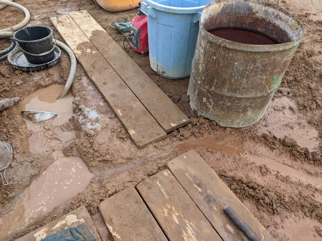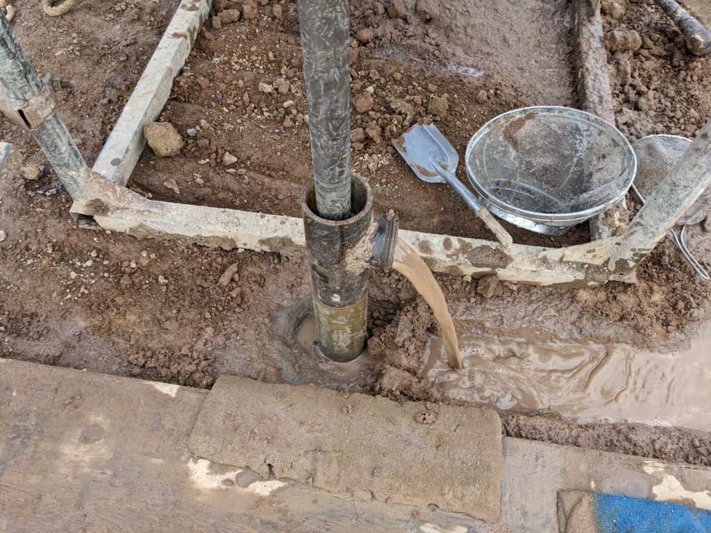 2箇所目に溢れ出した箇所は循環用の穴から離れていたし、そもそもこの状態で掘削を進めるのは芳しくないので、ここで掘削方法を変えることにした。