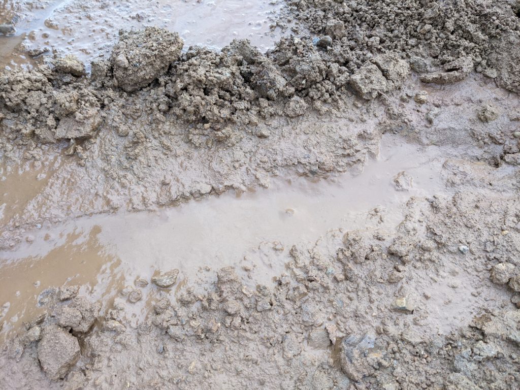 水たまりなんかなかったはず…とよくよく見ると、この場所から掘削水が溢れ出ている。