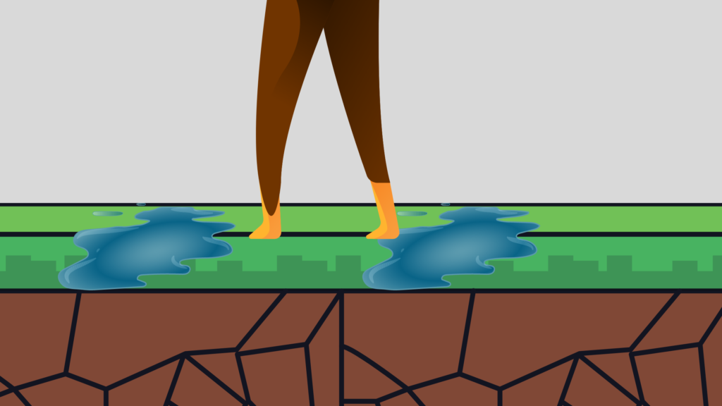 孔から2mくらい先の辺りに水たまりがあることに気づいた。