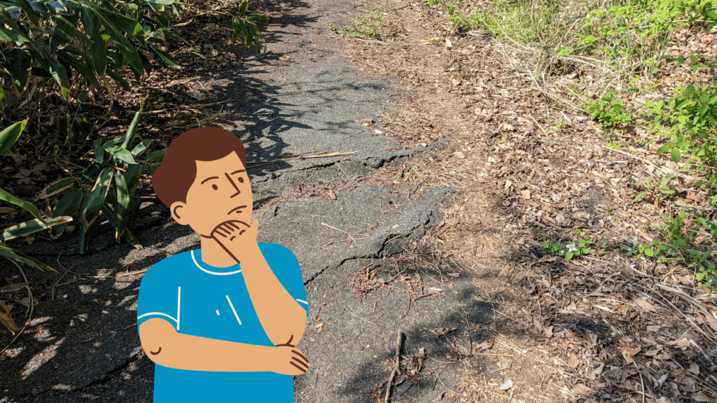 道がアスファルトでも傾斜に加えて