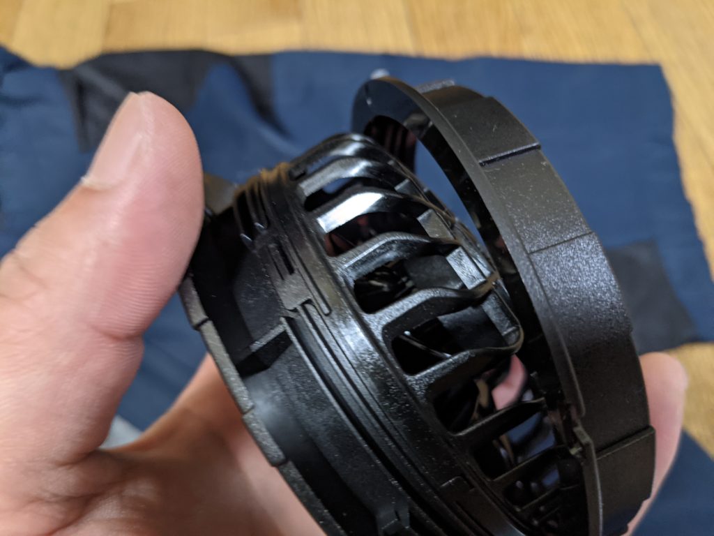 以前使っていた風神空調服はワンタッチのはめ込みタイプで着脱がわりと簡単でした。あまり良くないという声もありますが自分が使っていたものはたまに緩んだ感じはあっても外れることはなかったので着脱ははめ込みの方が簡単でした。ネジ式はしっかり締めれる分大きく動いてもしっかり付いていて高い安心感があります。