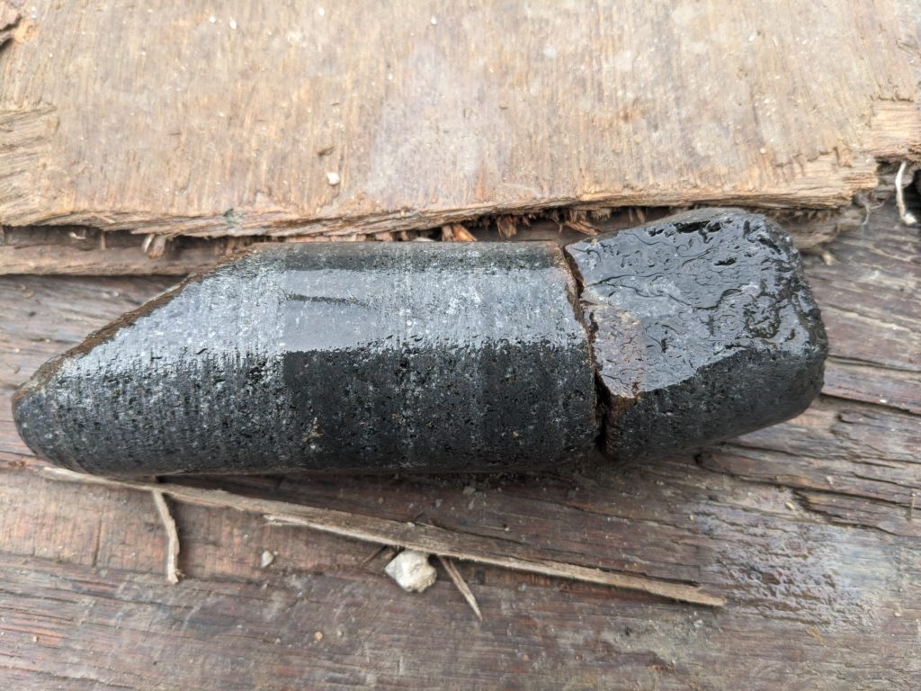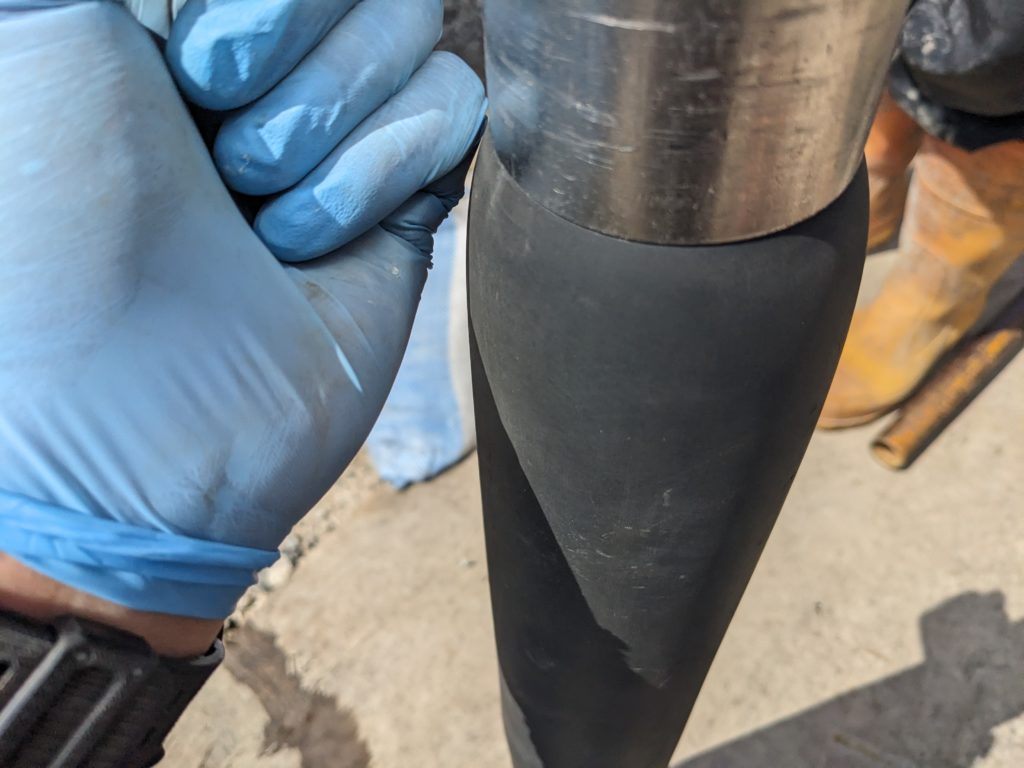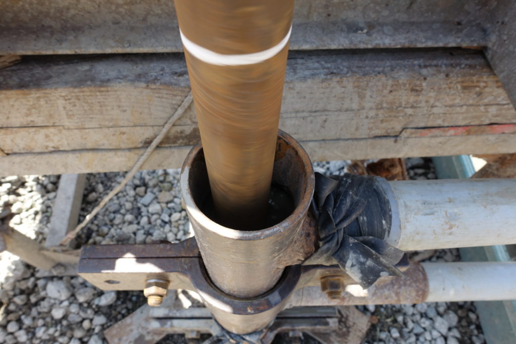 昨日なんとかシングルダイヤ(コアチューブ)で切った邪魔玉石がケーシングメタルじゃ歯が立たなかったので、持ってきたケーシングダイヤでしゃーっと掘り突破する。