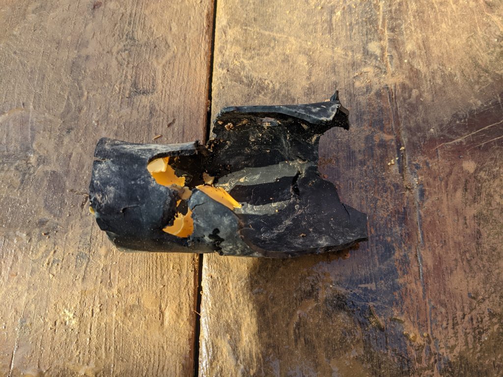 コアチューブの中に入りこんだLLTゴムの破片