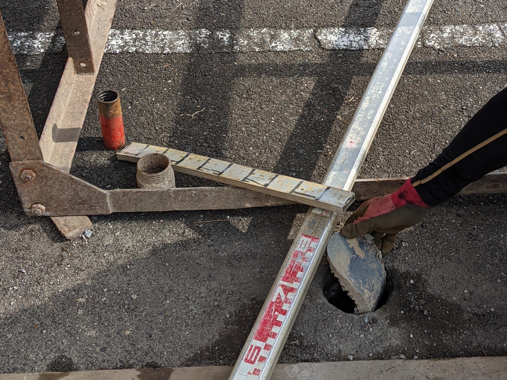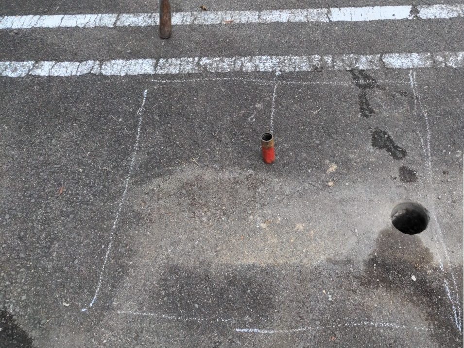 この知識調査が終わった後の工事で舗装を取り除いたりするので現状復旧は必要なしで調査孔の閉塞のみ行うことになった。