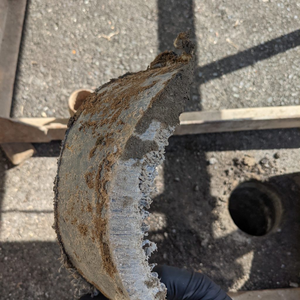 仕方ないのでさらにズラすが鉄筋コンクリートが現れる。この辺り一体を掘ってみたところアスファルトを切った区間の左側半分近くは鉄筋コンクリートが入っていることが分かった。