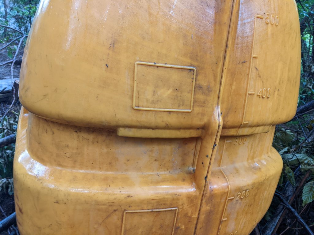 このとき水タンクを3つ使っていて、そのうち2つは掴むタイプの持ち手が付いているのですが