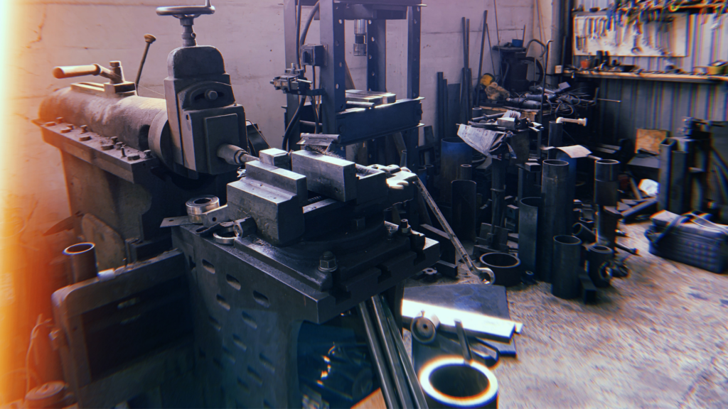 工場の中には旋盤の機械が数台置いてあり、作業は社長ともう1人の職人さんと2人で行われていました。