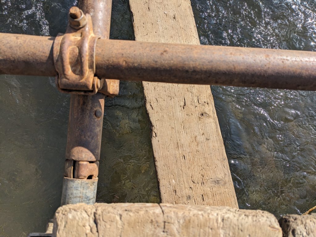 川の前に立って、よし組むぞとスイッチを入れて、事前に見たときよりも細かく川の幅や地形の癖を見てから川を渡るための桟橋足場を組み始めた。