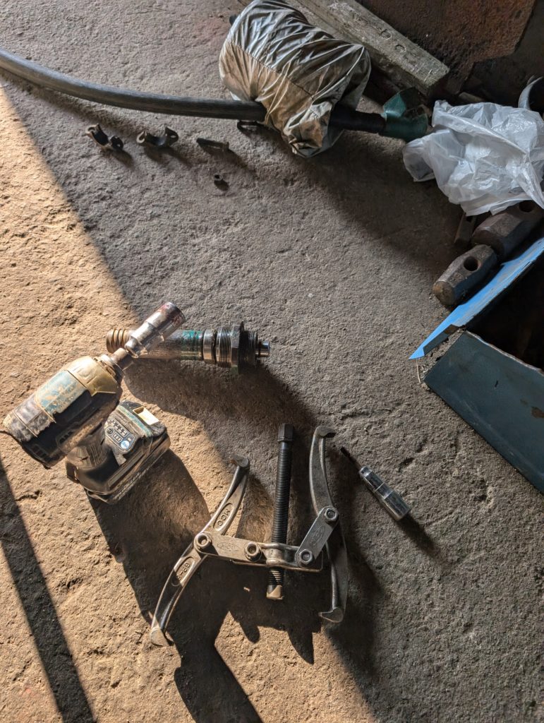 現場を終えて、倉庫作業。今回の倉庫作業は3日あったので色んな道具の整備や修理を行いました。