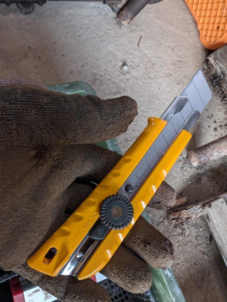 それからカッターナイフ。このカッターは自分がオペレーターを始めた時から使っているから10年くらいの物なのですが、大事に使っていたけど刃を出すときに押す部分の部品取れて見当たらなくなったので、新品に変えることにしました。今度は歯を出す部分の形状が違うものを購入しました。
