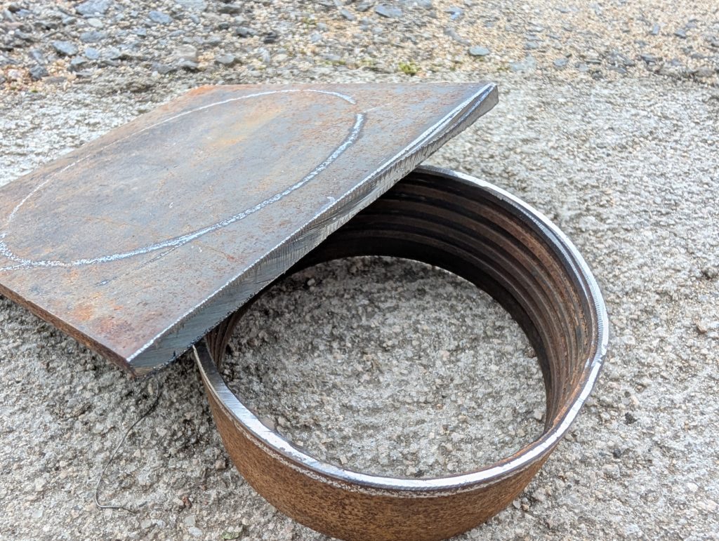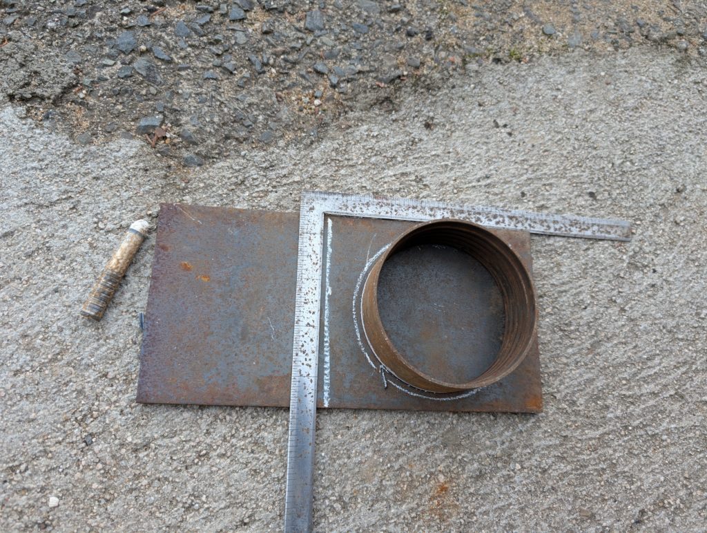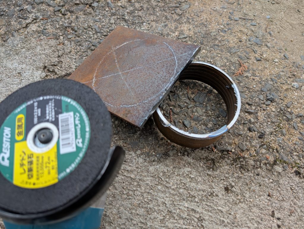 途中から気が付いた方もおられるかもしれませんが、この地具途中で失敗に気が付き、一度グラインダーでメタルと鉄板を切断して、再度鉄板を切るところからやり直しました。