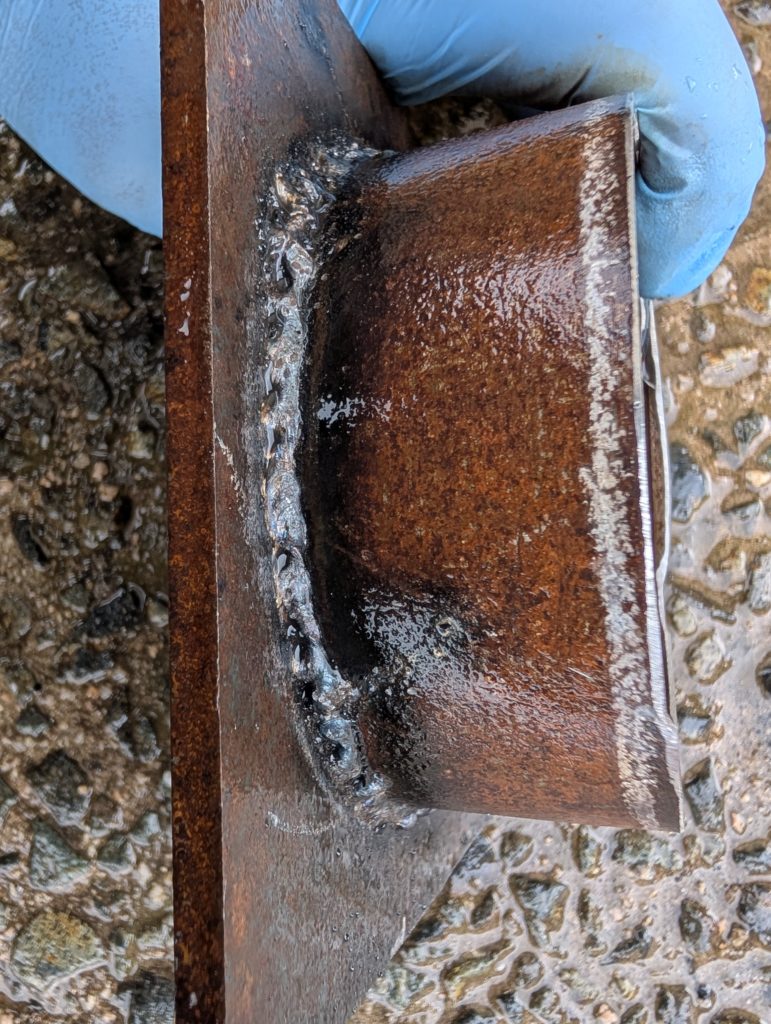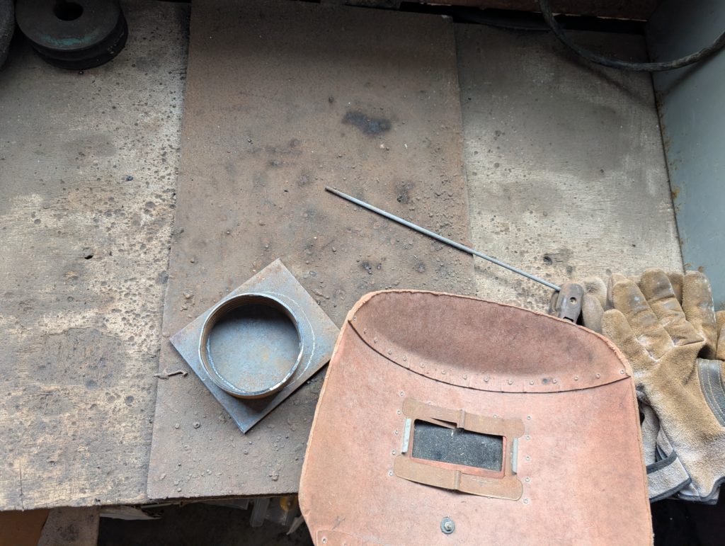 次は溶接台に移動して、鉄板とメタル材を溶接する。
