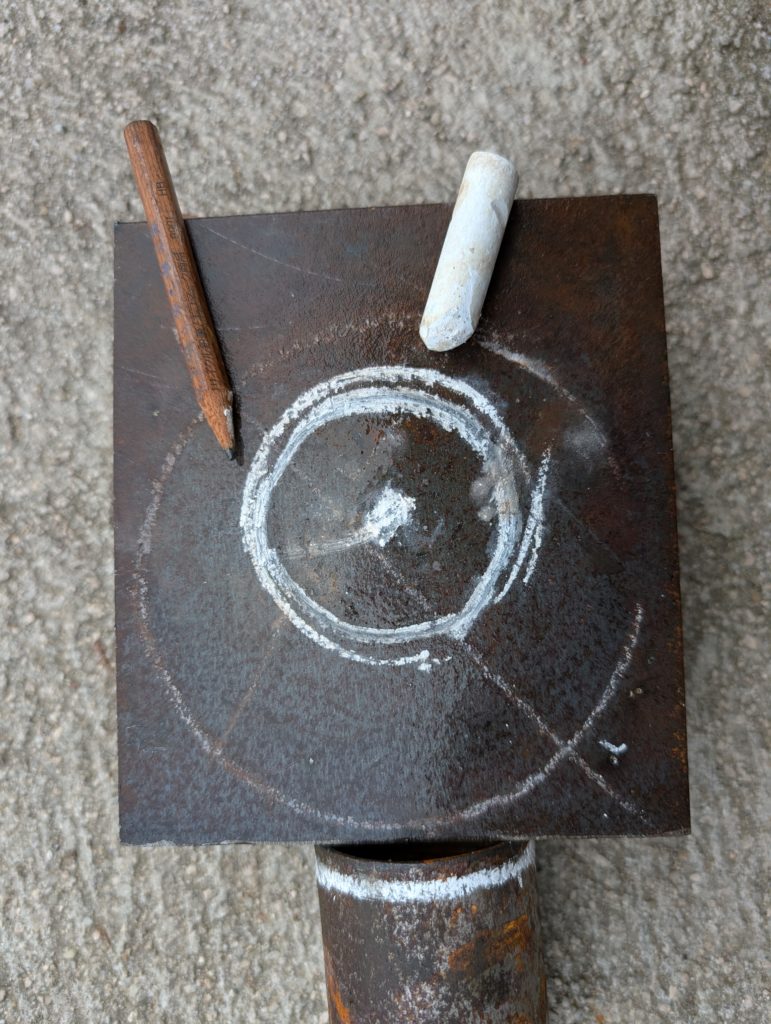その後は、鉄板にロッドサイズの線を書いて線の内側に穴を開ける。
