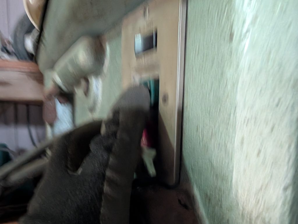 と、スイッチを押してみると、これはいかん、軸がブレブレ状態です。これじゃ穴は開けられませんから、直してから再度スイッチON。