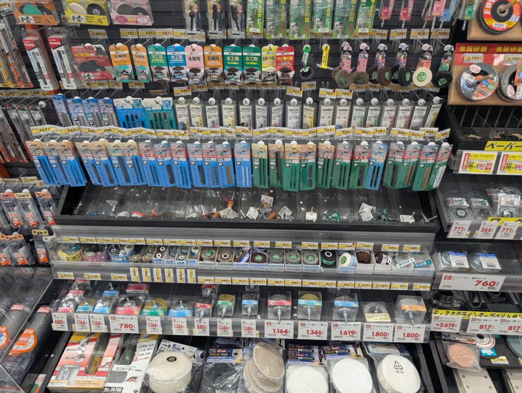 そして、次は切断面のギザギザを磨いて整えます。しかし、整えたいけどどうしようか?ということでホームセンターに走り、使えそうなアイテムを探しに行く。